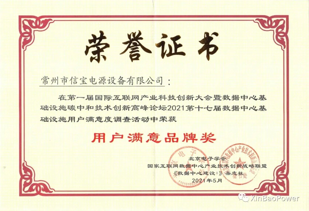 在中國計(jì)算機(jī)用戶協(xié)會、北京電子學(xué)會、中國綠色數(shù)據(jù)zhongxin推進(jìn)聯(lián)盟指導(dǎo)下,《數(shù)據(jù)zhongxin建設(shè)+》雜志社與國家互聯(lián)網(wǎng)數(shù)據(jù)zhongxin產(chǎn)業(yè)技術(shù)創(chuàng)新戰(zhàn)略聯(lián)盟(NIISA)開展合作,于2021年5月14日在北京國際會議隆重舉辦“數(shù)據(jù)zhongxin基礎(chǔ)設(shè)施碳中和技術(shù)創(chuàng)新高峰論壇暨2021第十七屆數(shù)據(jù)zhongxin基礎(chǔ)設(shè)施用戶滿意度調(diào)查結(jié)果揭曉大會”,常州市信寶電源設(shè)備有限公司成功入圍2020~2021年度的用戶“滿意品牌”獎。 信寶(Xinbao)UPS電源工廠是國內(nèi)專注于UPS不間斷電源產(chǎn)品研發(fā)、制造、銷售、服務(wù)為一體的高科技企業(yè),產(chǎn)品涵蓋UPS不間斷電源、EPS應(yīng)急電源、精密空調(diào)、微模塊一體化機(jī)房、穩(wěn)壓電源及蓄電池等,在各行各業(yè)發(fā)揮重要的電力保障的作用。